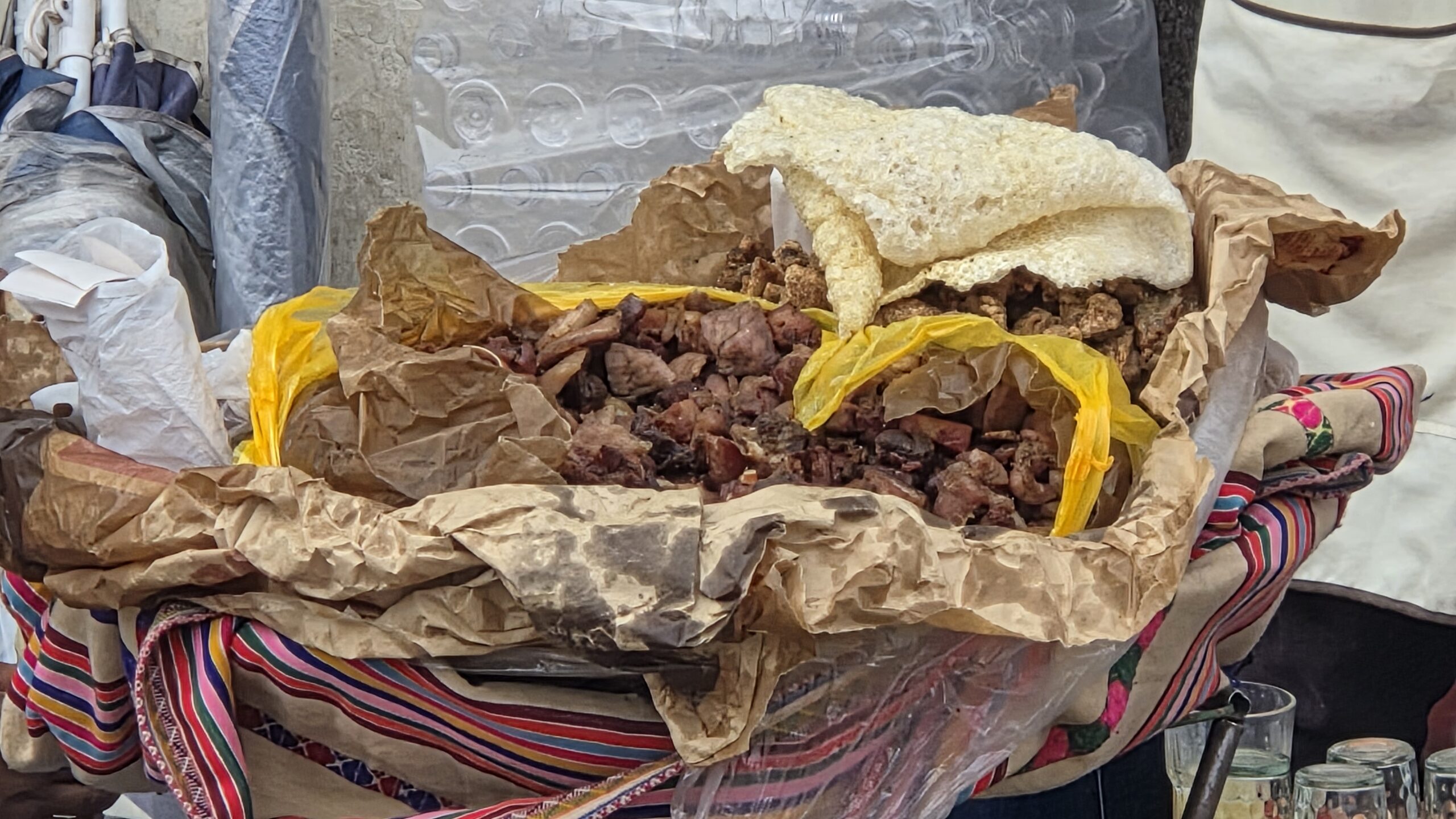 No a co jeszcze kupilismy ? Obowiazkowo czapki z alpaki 😁 Po pierwsze zeby nie rozczarować Sebastiana 🤪, a po drugie specjalnie nie zabralam czapki z domu a na szlaku Inkow czapka jest wskazana wiec zalapala sie do niezbednych zakupow. Poza tym butelka 1l na wode (a Tomek twierdzil ze to ja kolekcjonuje bidony 😜). Na szlak Inkow nie mozna zabierac wody w petach i mamy nowa butelke w kolekcji 🙂 Dorzucilismy jeszcze dwie peleryny przeciwdeszczowe czytajac ze na szlaku Inkow same kurtki i spodnie przeciwdeszczowe nie będą wystarczajace (a jestesmy juz w porze deszczowej niestety). Potraktowalismy to jako ubezpieczenie – zakupilismy wiec sa duze szanse ze sie nie przydadza 😁