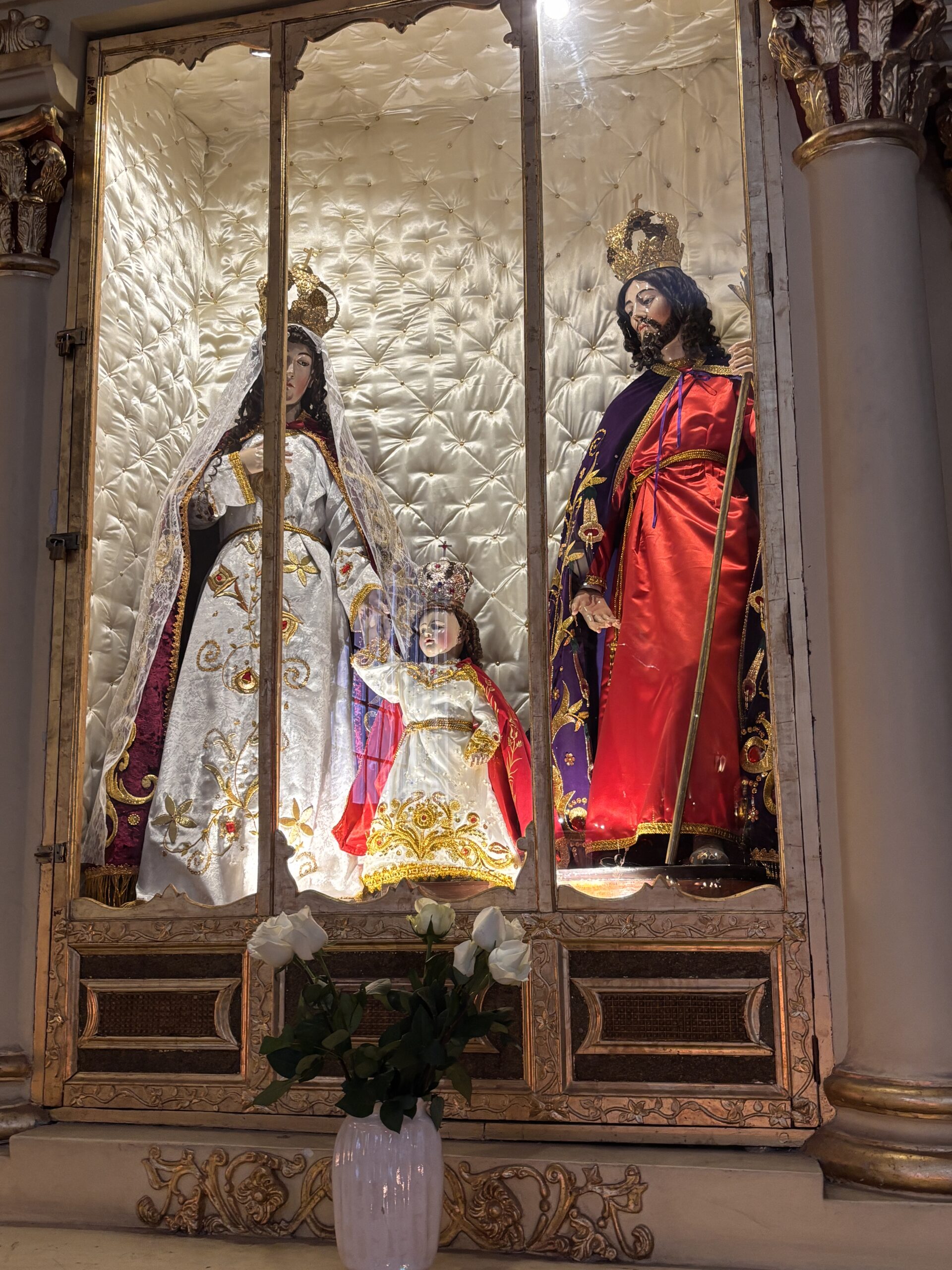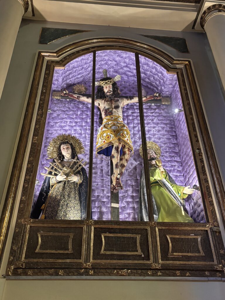 Wlasciwie to chcialam zaczac dzisiejszy dzien od zwiedzania katedry ale niestety do godz.10.00 jest zarezerwowana tylko dla lokalsow. Od 10 z kolei wejscie jest platne ale sprzedali nam bilety jak dla peruwianczykow. Dla turystow bilety na wiekszosc atrakcji są dwa razy droższe od biletow dla rezydentow. W katedrze niestety nie mozna bylo robic zdjec a szkoda. Wspomne zatem jedynie ze wiekszosc oltarzy byla pozlacana, oltarz glowny podobno byl ze srebra, stele dla choru wyrzezbione w cydrze no i slynny obraz Marcosa Zapato „ostatnia wieczerza” zainspirowany obrazem Leonarda Da Vinci ale z lokalnym udoskonaleniami. Na przyklad Jezus z apostolami spozywali pieczona swinke morska, popijali chicha z peruwianskich kieliszkow a na stole byla papaja. To co natomiast rzuca sie w oczy ale mozna tez zobaczyc w innych kosciolach tutaj to fakt ubierania rzezb w ubrania z materialu. Nawet na krzyzu Chrystus wisi opasany ludowym materialem. Bardzo zdobne sa z kolei sukienki Maryji, ktorej ilosc oltarzy zdecydowanie dominuje w porownaniu do rzezb z Chrystusem. Zalaczam zatem jak wygladaja takie rzezby z kosciola sw. Franciszka.