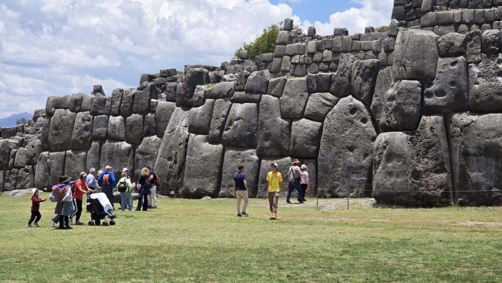 I na koniec zwiedzamy pozostalosci po zabudowaniach obronnych Inkow w kompleksie Sacsayhuaman. To trzy poziomy tarasow zachodzacych na siebie zygzakami i zbudowanych z wielkich kamiennych blokow. Taki blok moze miec do 5m wysokosci i wazyc do 350t. Podobno sa tak dopasowane do siebie ze nie mozna miedzy nimi wcisnac nawet noza. Znajduja sie niedaleko Cusco i w zamysle Inca Parachuteca to miejsce mialo miec ksztalt glowy pumy a zygzakowate mury mialy wygladac jak jej zęby.